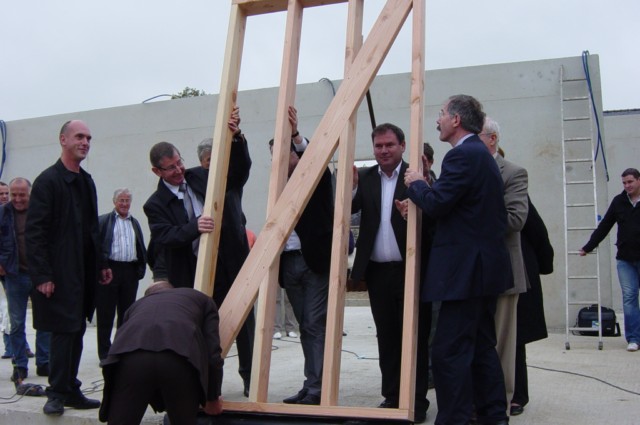 La première pierre remplacée par un élément de mur à ossature bois.