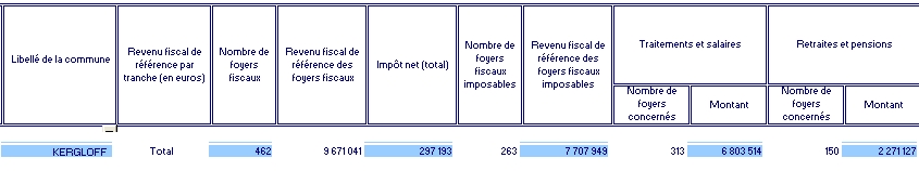 Extraction statistiques concernant Kergloff: (impôt sur les revenus en 2008)