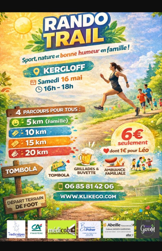 Le Comité des Fêtes de Kergloff organise la troisième édition de son rando-trail le samedi 16 mai 2026.
