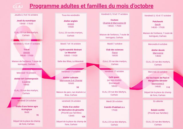 Le programme des activités proposées par le CLAJ pour le mois d'Octobre 2025.